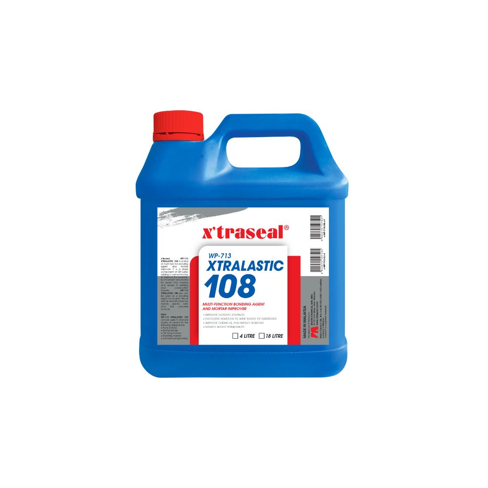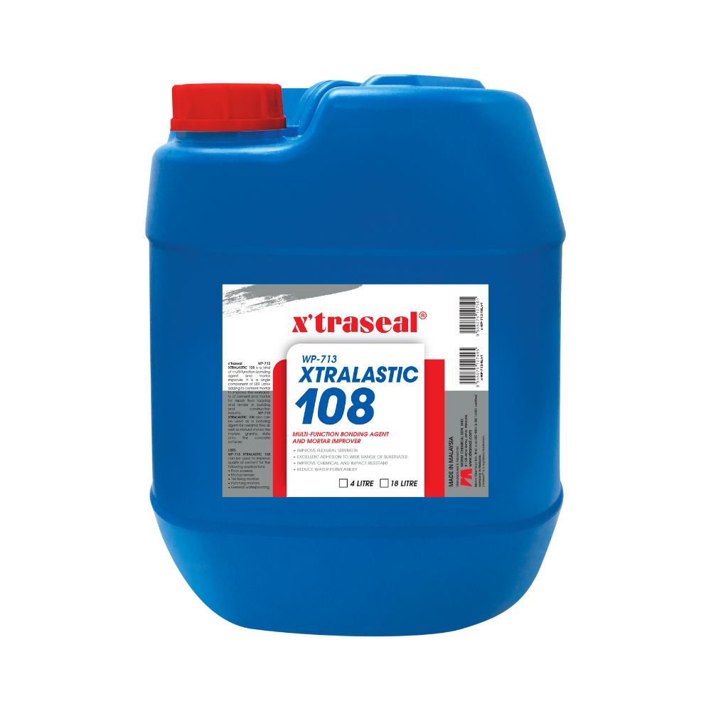 WP-713 XTRALASTIC 108 is a kind of multi-function bonding agent and mortar improver. It is a single component of SBR Latex adding to cement mortar to improve the workability of cement and mortar for repair floor topping and render in building and construction industry. WP-713 XTRALASTIC 108 also can be used as a bonding agent for ceramic tiles as well as natural stones like marble, granite, slate onto the concrete surfaces.